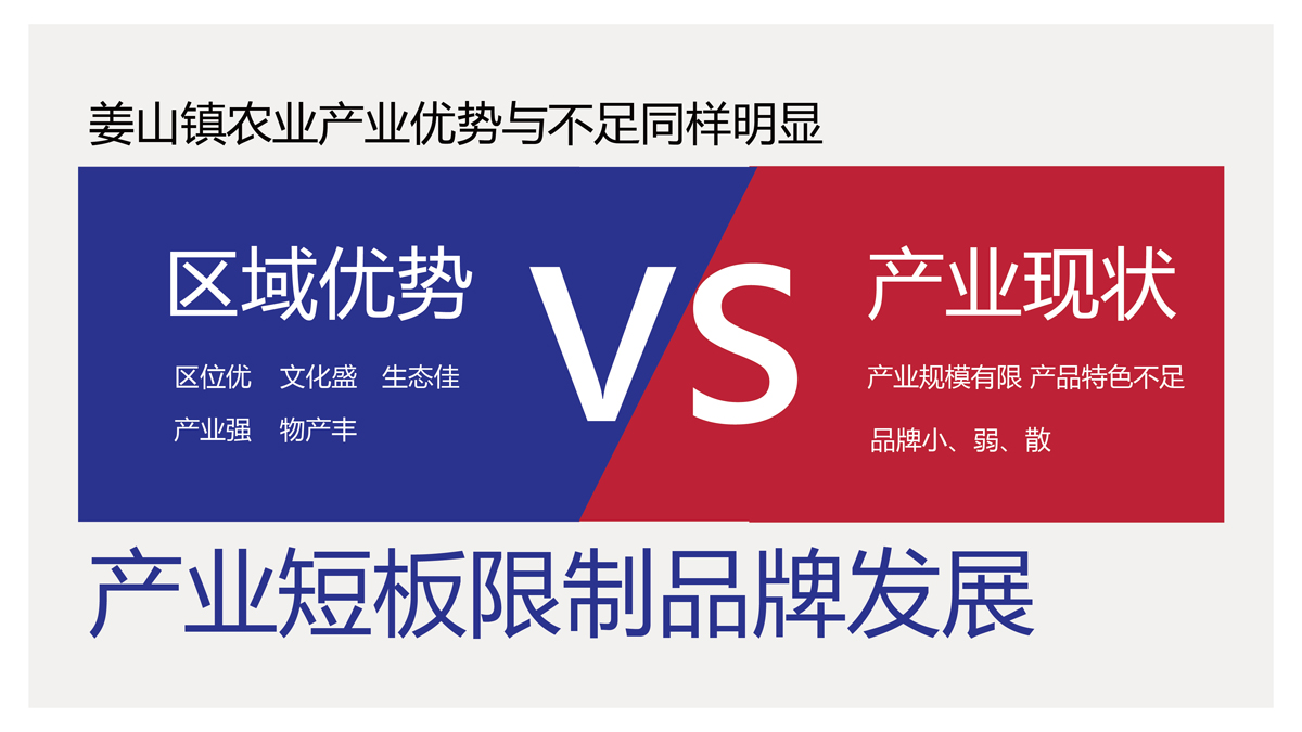 背景:寧波市鄉(xiāng)鎮(zhèn)級農(nóng)業(yè)加速發(fā)展,姜山鎮(zhèn)作為全國綜合實力百強縣,農(nóng)業(yè)產(chǎn)業(yè)規(guī)模有限,農(nóng)產(chǎn)品特色不足,品牌化程度低,農(nóng)業(yè)產(chǎn)業(yè)亟待升級。